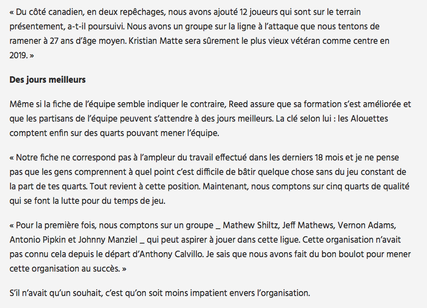 - Attaque les partisans des Alouettes..