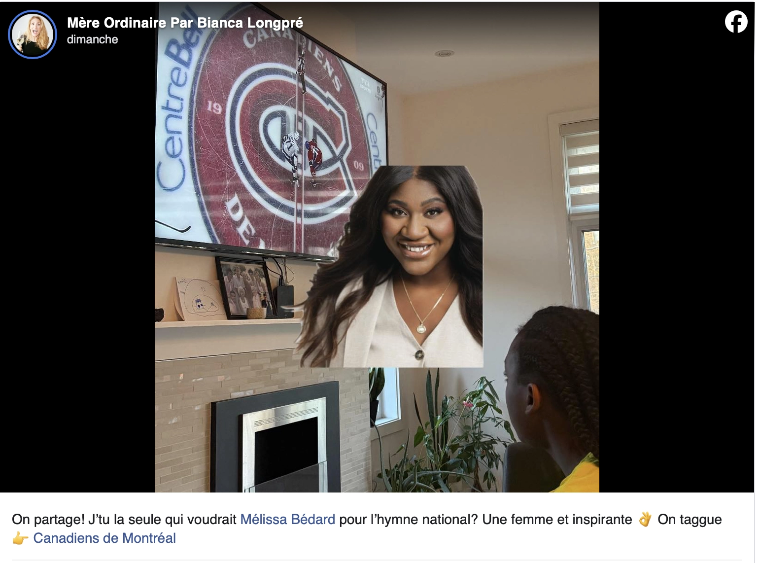 Au départ, ça ressemblait simplement à une publication Facebook légère, spontanée, presque affectueuse. Bianca Longpré lançait l’idée de voir Mélissa Bédard chanter l’hymne national avant un match des Canadiens de Montréal.